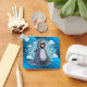 Illustration of a boy in a shark hoodie with a serene blue circular background.