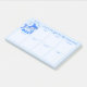 Personalize this funny blue shark weekly calendar sticky note pad with your name of choice for a one of a kind personalized gift. My original Great White Shark design in abstract chunks of blue swims on a soft blue background with seven paler blue squares, one for each day of the week. Every bit of text on this shark calendar can be modified and customized to your liking. From the name field to DON'T FORGET TO BE JAWSOME, LIVE EVERY WEEK, LIKE IT'S and WEEK, all text in blue can be altered... including the days of the week. Create unique weekly calendar Great White Shark sticky notes for your favorite fisherman or marine biologist.
