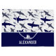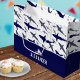 Add a touch of the ocean to the birthday party of your little boy with this custom blue and white shark pattern gift bag. Gift bag has cute sharks swimming in the sea and your little one's first name.