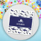Add a touch of the ocean to the birthday party of your little boy with this custom blue and white shark pattern paper napkin. Each napkin has cute sharks swimming in the sea and your little one's first name.