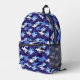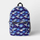 Cool shark camouflage pattern created with shark silhouettes swimming freely in shades of blue and white. It's a unique design for shark lovers on custom backpacks. You can easily change the size of the pattern on each panel and add any text to personalize. Great for school, travel, and more!