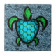 Digital painting of a sea turtle with a blue hexagonal patterned shell. Sea turtle art from wingedturtle.com.