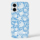 Customize this blue shell pattern iPhone 16 case with your your name in a trendy modern CAP font in blue on white. It's so modern and beachy!