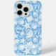 Customize this blue shell pattern iPhone 15 pro max case with your your name in a trendy modern CAP font in blue on white. It's so modern and beachy!