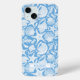 Customize this blue shell pattern iPhone 15 plus case with your your name in a trendy modern CAP font in blue on white. It's so modern and beachy!