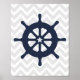 Blue Ship Wheel Nautical Nursery Poster