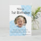 Blue Shippo 1st Birthday Photo Invitation 招待状