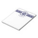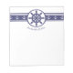 Jot down notes and reminders with a personalized Blue Ships Wheel Personalized Notepad. Notepad design features a blue ships wheel adorned with an anchor lined banner. Additional matching stationery items available with this design as well. If you need assistance with personalization, please contact me directly.