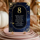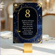 Guide your guests under the stars with this Blue shooting star Celestial sun and moon wedding seating Table Number. Designed against a romantic midnight blue sky inspired by a dreamy starry night, this elegant piece features a glowing crescent moon, radiant sun accents, and a delicate constellation pattern. A graceful shooting star sweeps across the cosmic backdrop, enhanced by a soft gazing halo glow that adds depth and mystical charm. Perfect for couples planning a celestial celebration, this table number brings refined beauty and cohesive style to your reception décor, capturing the magic of a love story written beneath a sparkling midnight blue sky.