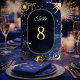 Guide your guests under the stars with this Blue shooting star Celestial sun and moon wedding Table Number. Designed against a romantic midnight blue sky inspired by a dreamy starry night, this elegant piece features a glowing crescent moon, radiant sun accents, and a delicate constellation pattern. A graceful shooting star sweeps across the cosmic backdrop, enhanced by a soft gazing halo glow that adds depth and mystical charm. Perfect for couples planning a celestial celebration, this table number brings refined beauty and cohesive style to your reception décor, capturing the magic of a love story written beneath a sparkling midnight blue sky.