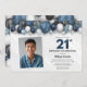 Blue Silver Black & White 21st Birthday Photo Invitation