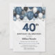 Blue Silver Black & White 40th Birthday Invitation