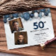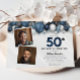 Blue Silver Black & White 50th Birthday 2 Photo Invitation