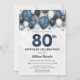 Plain white envelopes are included with paper invitations and will come to fit the invitation size you select. If you don’t need the envelopes, you may choose to not receive them by selecting the dropdown below "Envelopes" and choosing "None." If you’d like to have a design on your envelopes, you can browse all of these available envelopes to find the design that complements your Blue Silver Black White 80th Birthday Invitation.
