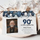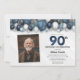 Blue Silver Black & White 90th Birthday Photo Invitation