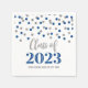 Customizable graduation napkins for class of 2023 with glamorous blue and silver confetti pattern.