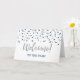 Welcome to the team card for new employees in dark navy blue and silver confetti pattern.