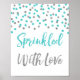 Sprinkled with love sign for baby sprinkle in light blue and silver confetti pattern. Please note glitter effect is photographic effect only.