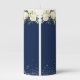 Modern baptism candle featuring a navy blue background that can be changed to any color, elegant scattered silver glitter, a religious cross, a floral display, and a text template that is easy to personalize.