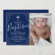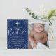 Blue Silver Glitter Boy Baptism Photo Invitation