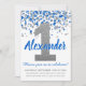 Blue Silver Glitter Confetti Boy First Birthday Invitation