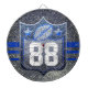 Faux glitter sparkles behind a bold jersey number. Easily update the football player's number on the front and personalize the info on the back. Available in other sparkly team colors.