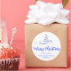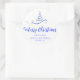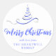 Blue Silver Ribbon Tree Merry Christmas Script Classic Round Sticker