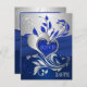 This romantic royal and navy blue and silver gray scrolled wedding reply card has a blue PRINTED ribbon and a silver and puffy looking blue joined hearts on it that matches the wedding invitations shown below. It would be perfect for a blue and silver themed wedding. It would also be very nice for a 25th wedding anniversary party too. ***PLEASE NOTE there is no raised elements on this invitation. Everything is printed flat. The text and paper is all customizable. It is shown here on lustrous metallic "ice" paper, which has a subtle metallic sparkle to it. I would NOT use any of the colored papers (metallic champagne, gold, silver, felt, speckled) as they will ALL discolor the invitation. The linen paper will add a texture of thin lines that you may not want. The basic or recycled papers are a cheaper alternative if you are on a tighter budget. ***PLEASE NOTE that if you change the font or size of the font, it may alter how your invitation prints. It will print the way you see it on your monitor, so if you have alignment issues, or sizing problems, please contact me for help. I will not see your invitation once you order it, and Zazzle will NOT edit anything (typos, alignment, etc.). If you require assistance or would like any other matching items, please email your request to niteowlstudio@gmail.com. Existing matching items are shown below.