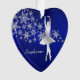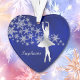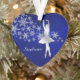 This pretty Holiday ornament will make a wonderful keepsake gift for the dancer in your life! It features a silver ballerina in front of a spray of ornate silver snowflakes. The image is placed on a gradient deep blue background. Your text is in matching silver at the side. The back of the ornament has the same blue background and snowflakes, and another text field for you to customize. Beautiful!