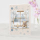 Blue Silver Snowflakes Window Teddy Bear Christmas Card
