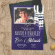Announce your Bar Mitzvah with vivid prayer shawls overlaying photo. Vivid blue Bar Mitzvah invitation cards with striped tallit artwork, return address labels, and other blue and/or green Bar Mitzvah accessories will complete the look for a modern traditional celebration. Hints of shiny silver, teal, royal blue, and bright green on all cards in this collection. Switch foil details between silver and gold. Versatile for silver and blue, or gold and blue Bat Mitzvah themes.