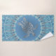 Silver sea turtle in a mandala on a blue background. Elegant beach style decor.