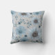 Blue Silver Watercolor Floral Script Throw Pillow
