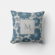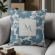 Blue silver watercolor floral pillow featuring elegant script accents with trendy beautiful flowers and a vintage style, perfect for holiday, spring, fall, autumn, or winter home decor.