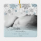 Celebrate baby's first Christmas with this elegant personalized blue and silver snowflake ornament. This ornament is fully customizable! You can edit the text and add your own photo by clicking "personalize this template". This personalized baby's first Christmas ornament feature a custom photo of your baby and space for your baby's name and the current year. Hand drawn icy blue, white, and silver glitter snowflakes are clustered around the top as a cute winter frame and the text is in gray. Classic blue and silver Christmas color scheme make this photo keepsake ornament festive but classy.
