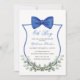 Blue Simple Bow Eucalyptus Crest Boy Baby Shower Invitation