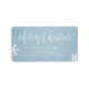 Personalized Christmas return address labels feature white handwritten calligraphy "merry Christmas" script and snowflakes on winter blue textured background, simple, modern and elegant.