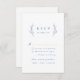 Rustic hand illustrated botanical leaves wreath and modern classic font in blue and white, Simple and elegant. Great RSVP card for modern classic wedding, simple formal wedding, elegant botanical garden wedding.