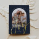 Blue Simple Joy Modern Script Arch Photo Christmas Foil Holiday Card