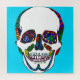 Hand-drawn mosaic-style, anatomical skull with blue background.