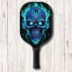 Blue Skull with Blue Flames Modern Monogram Pickleball Paddle