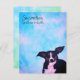 Write your own special message on this brown doggie, blue sky background. Painted with acrylic, this sky blue, big-eared dog is charming for your letter, birthday card, or invitation. Dreamy clouds and blue and turquoise brush strokes is beautifully transferred to a variety of cards and gifts.