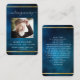 A dark blue sky as background, a faux gold frame and space for your photo. Personalize and add name, dates and your text and prayer.