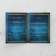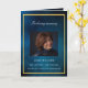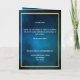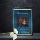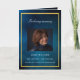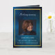An elegant 4-page program. A dark blue sky as background, a faux gold frame, and space for your photo on the front. Personalize and add name, dates and your text. White text.