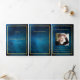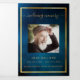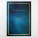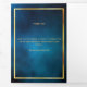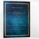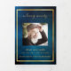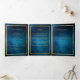 An elegant tri-fold program. A dark blue sky as background, a faux gold frame and space for your photo. Personalize and add name, dates and your text.
