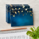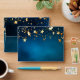 Inside: A dark blue night sky, a full moon and faux golden stars. Outside: Dark blue night sky background. Templates for a name and address. The name is written with a modern and trendy handlettered style script. Golden colored letters. Perfect for birthday party invitations, save the date and thank you cards!