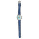 The blue band is the right color for a boys watch. My grandson loves lacrosse and the watch is easy to put on. He is ten years old. The lacrosse picture is very clear and I like the blue hands on the watch. It's good for teaching time.