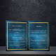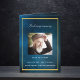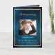 An elegant 4-page program. A dark blue sky as background, a faux gold frame, and space for your photo on the front. Personalize and add name, dates and your text. White text.