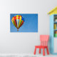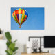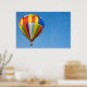 Colorful hot air balloon in blue sky.