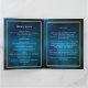 An elegant 4-page program. A blue sky as background, a faux gold frame, space for your photo on the front. Personalize and add name, dates and your text.